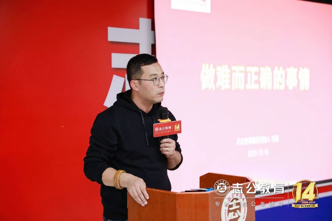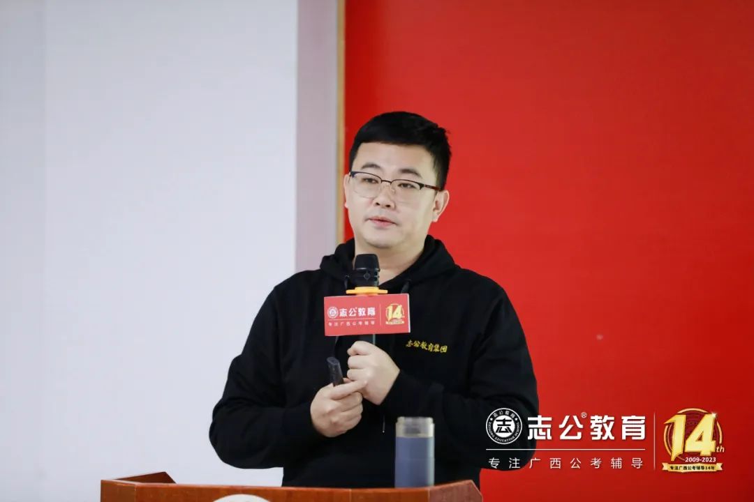 16日上午9點許,董事長李勇發(fā)表致辭,他認(rèn)為:“聚焦是一種力量”,對于志公教育而言,聚焦就是專注廣西公考輔導(dǎo)。