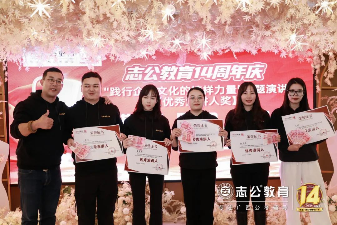 16日晚上,全體員工齊聚一堂,開始了頒獎儀式,感謝各位志公人為志公教育的付出。頒獎的項目有志公教育14周年慶舉辦的主題演講比賽和短視頻大賽。激動的心,顫抖的手,努力有了回報,獲獎選手拿著獎金,喜悅之情溢于言表。大家也都用掌聲來表達(dá)對他們的祝福。