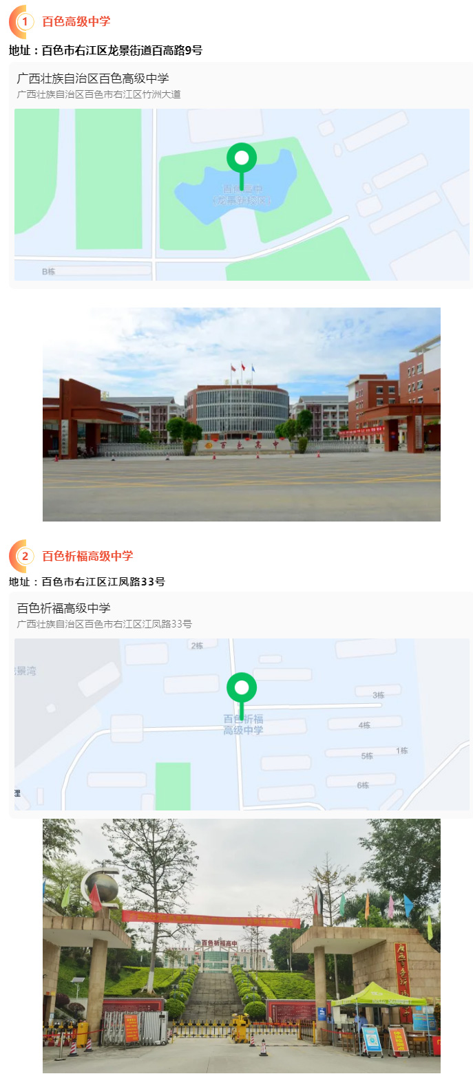 2.請?zhí)崆笆煜た键c(diǎn)地址,做好路線、住宿的安排。本次考試參考人數(shù)較多,考點(diǎn)分布分散,建議考生考前實(shí)地察看考點(diǎn),確認(rèn)考點(diǎn)入口位置,防止走錯(cuò)考點(diǎn)。請充分考慮考點(diǎn)周邊交通通行情況和停車場地容量,合理安排出行方式,預(yù)留充足時(shí)間,確??荚嚠?dāng)天按時(shí)到達(dá)。另外,考試期間百色市及各考點(diǎn)學(xué)校周邊的住宿比較緊張,請?zhí)崆邦A(yù)定。