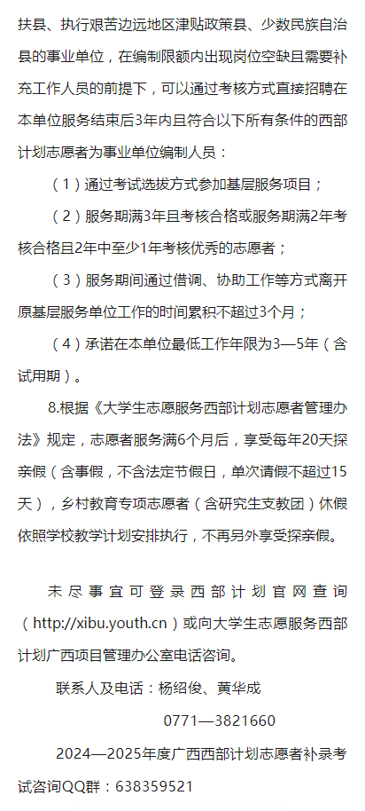 2024—2025年度廣西大學生志愿服務(wù)西部計劃補錄公告