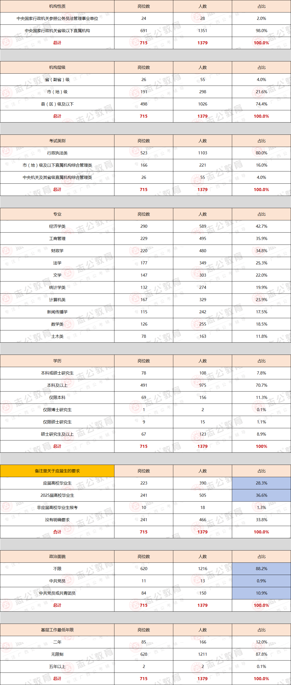 2025國(guó)考廣西職位分析:擴(kuò)招!共715個(gè)崗位,招錄人數(shù)1379人!