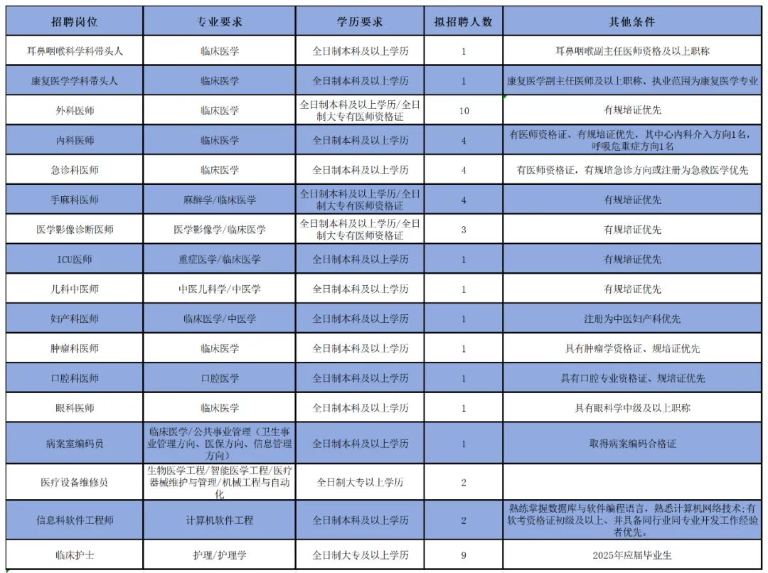 招聘對象:1、應屆畢業(yè)生;2、規(guī)培生;3、已取得執(zhí)業(yè)資格的在崗人員