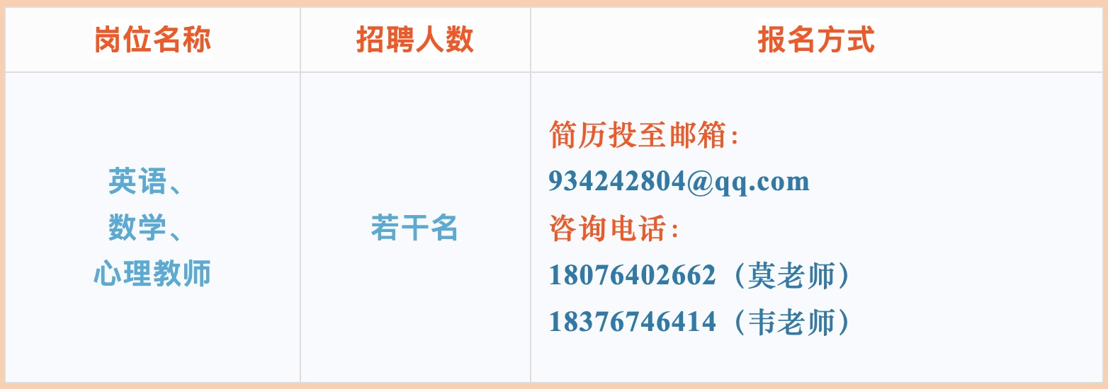 報(bào)名實(shí)行網(wǎng)絡(luò)形式,有意者請(qǐng)將簡(jiǎn)歷投至學(xué)校郵箱934242804@qq.com。具體面試時(shí)間電話通知。