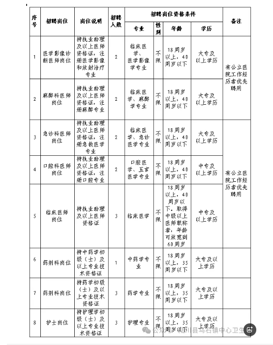 報(bào)名地點(diǎn):陸川縣烏石鎮(zhèn)中心衛(wèi)生院五樓院辦公室。(咨詢(xún)電話:0775-7132235)。