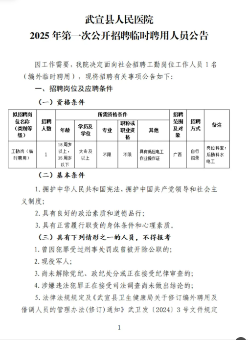 原文標(biāo)題:武宣縣人民醫(yī)院2025年第一次公開招聘臨時(shí)聘用人員公告
