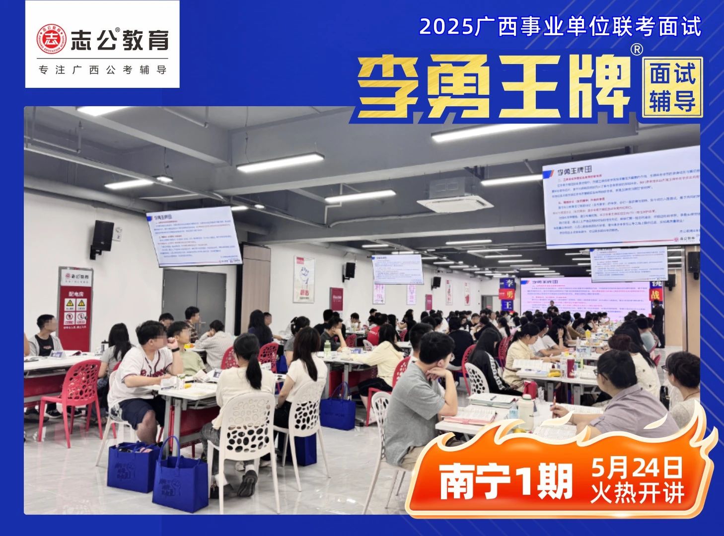 2025年廣西事業(yè)單位面試培訓(xùn)課程 —— 李勇王牌®班在學(xué)員們的熱切期待中正式開班。學(xué)員們陸續(xù)簽到,為助力學(xué)員迅速適應(yīng)學(xué)習(xí)節(jié)奏,志公教育精心準(zhǔn)備了備考大禮包,內(nèi)含歷年課程講義、高分技巧等實(shí)用資料。班主任團(tuán)隊(duì)全程跟進(jìn),細(xì)致講解課程安排、考勤制度及學(xué)員服務(wù),從學(xué)習(xí)到生活,全方位為學(xué)員保駕護(hù)航。