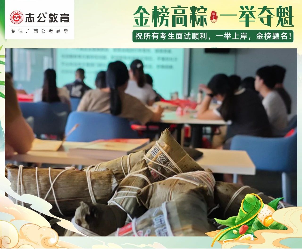 最后,再次祝愿大家端午節(jié)安康,六一兒童節(jié)快樂!愿志公教育每位員工在雙節(jié)的喜慶氛圍中,收獲滿滿,幸福常伴!也愿志公教育每位學(xué)員吃上粽子一舉高“粽”,實(shí)現(xiàn)自己的公職夢(mèng)想!