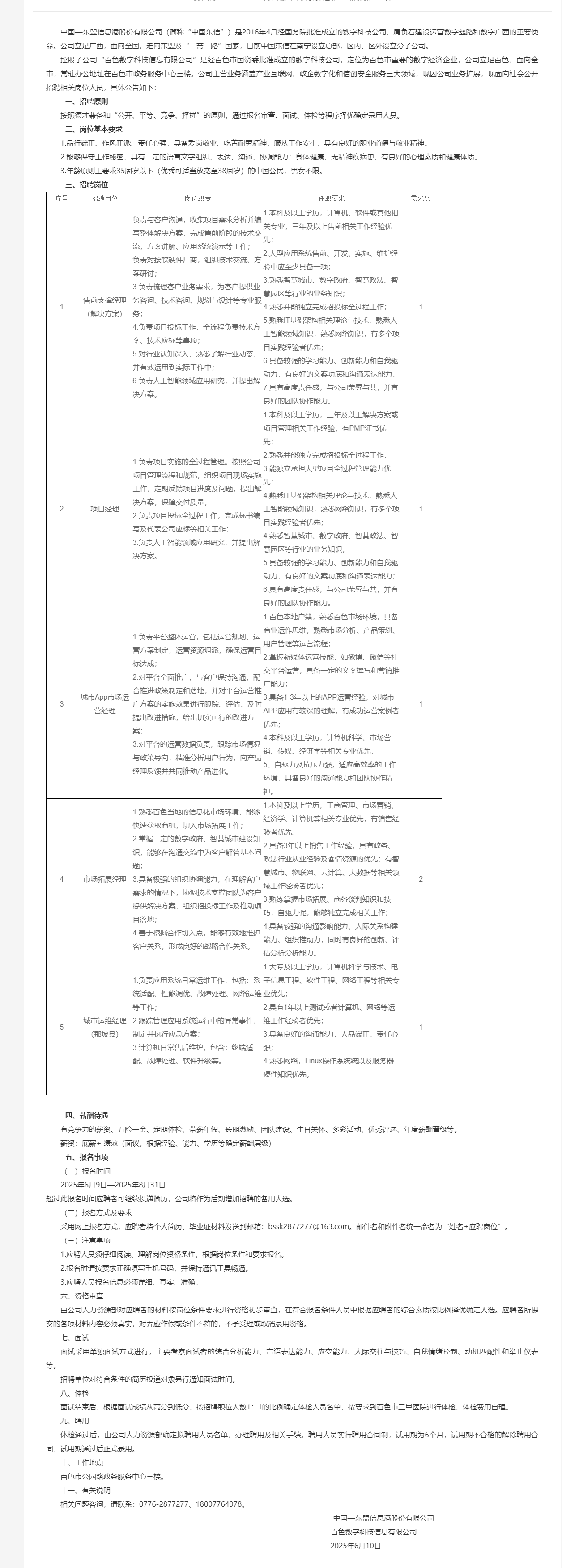 原文標(biāo)題:中國(guó)—東盟信息港股份有限公司2025年人才招聘公告