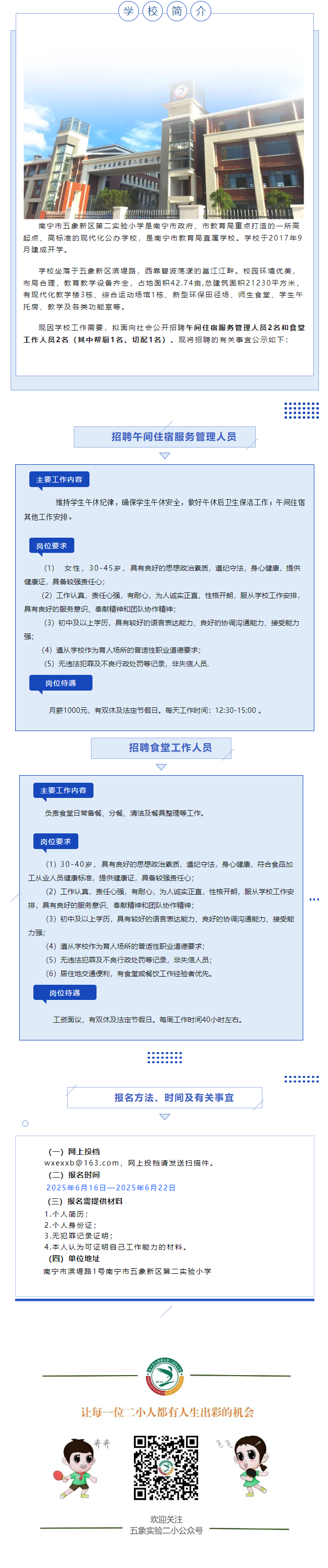 南寧市五象新區(qū)第二實(shí)驗(yàn)小學(xué)招聘公告