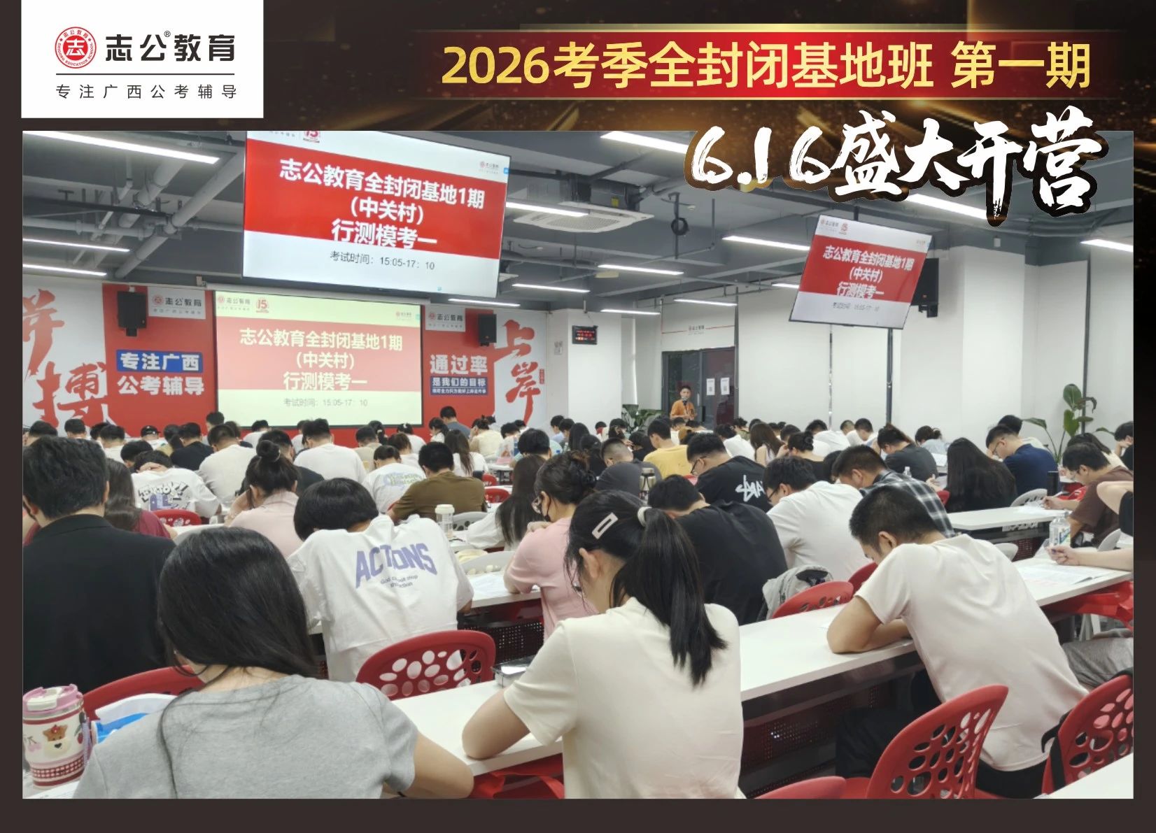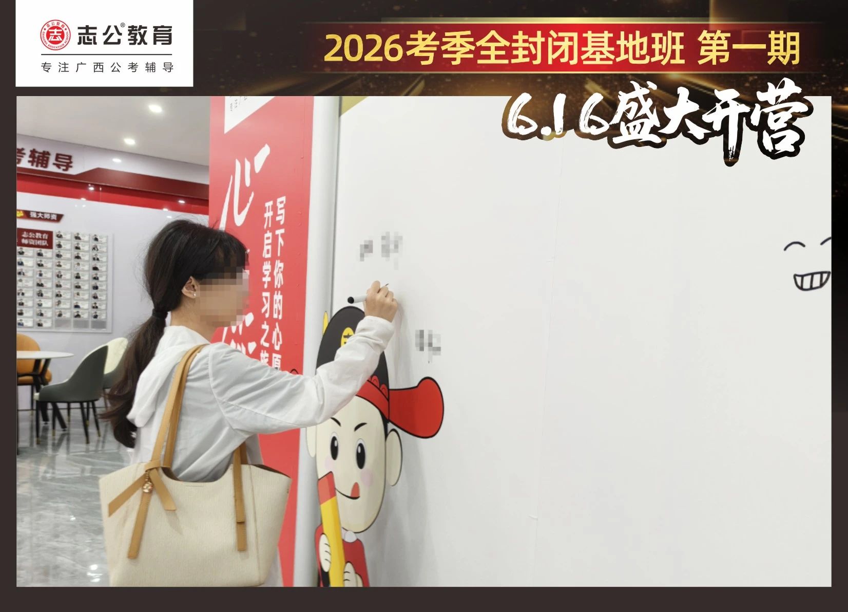 由于這段時(shí)間受臺(tái)風(fēng)影響,南寧迎來下雨天,但學(xué)員們滿懷先一步備考,快一步成功圓夢(mèng)的滿滿炙熱信心,早早就在志公教育(中關(guān)村)全封閉基地前臺(tái)等候,6月16日,志公教育26考季全封閉基地班第1期的學(xué)員們齊聚一堂,正式開啟他們的公考備戰(zhàn)之旅。簽到環(huán)節(jié)作為基地班課程的第一站,不僅是對(duì)學(xué)員們的歡迎儀式,更是他們邁向夢(mèng)想的第一步。