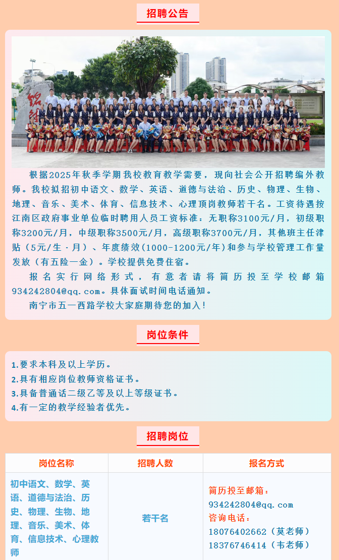 原文標題:快報名!南寧市五一西路學(xué)校招聘老師啦!