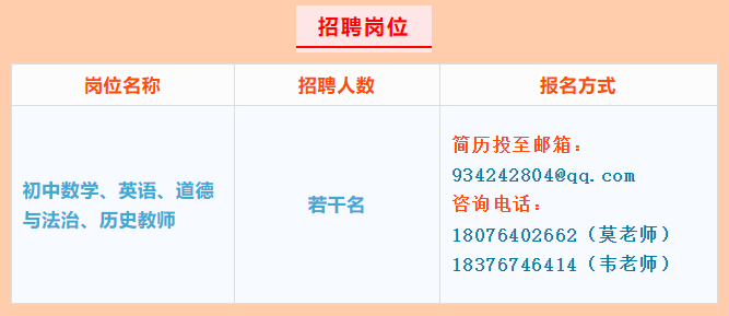 根據(jù)2025年秋季學(xué)期我校教育教學(xué)需要,現(xiàn)向社會公開招聘編外教師。我校擬招初中數(shù)學(xué)、英語、道德與法治、歷史頂崗教師若干名。工資待遇按江南區(qū)政府事業(yè)單位臨時聘用人員工資標(biāo)準(zhǔn):無職稱3100元/月,初級職稱3200元/月,中級職稱3500元/月,高級職稱3700元/月,其他班主任津貼(5元/生·月)、年度績效(1000-1200元/年)和參與學(xué)校管理工作量發(fā)放(有五險一金)。學(xué)校提供免費住宿。