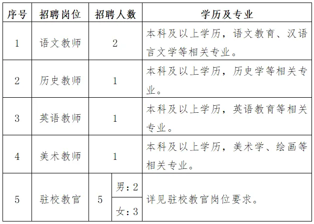 2.女教官:大專及以上學(xué)歷,有駐校教官工作經(jīng)歷或宿管工作經(jīng)歷。(退役軍人,軍警司法院校畢業(yè)生,體育專業(yè)大專以上畢業(yè)生優(yōu)先)
