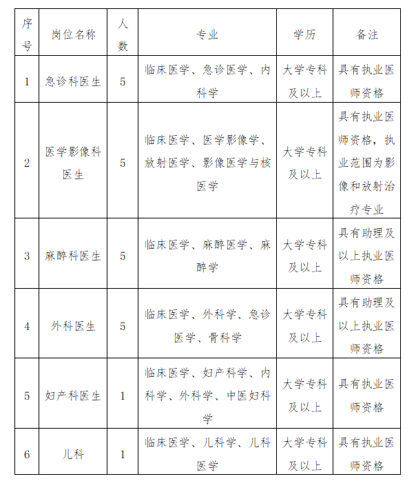 崇左市江州區(qū)人民醫(yī)院是由江州區(qū)政府舉辦的縣級(jí)公立醫(yī)院,規(guī)劃建設(shè)成為集醫(yī)療、保健、康復(fù)、教學(xué)、科研的國(guó)家二級(jí)甲等綜合性醫(yī)院,是崇左市人民醫(yī)院江州區(qū)分院,中山大學(xué)附屬第一醫(yī)院廣西醫(yī)院及廣西民族醫(yī)院技術(shù)協(xié)作單位。為進(jìn)一步完善人才隊(duì)伍,促進(jìn)醫(yī)院學(xué)科發(fā)展,根據(jù)醫(yī)院業(yè)務(wù)發(fā)展需要,我院現(xiàn)面向社會(huì)公開(kāi)招聘臨床醫(yī)生一批。具體招聘事宜如下: