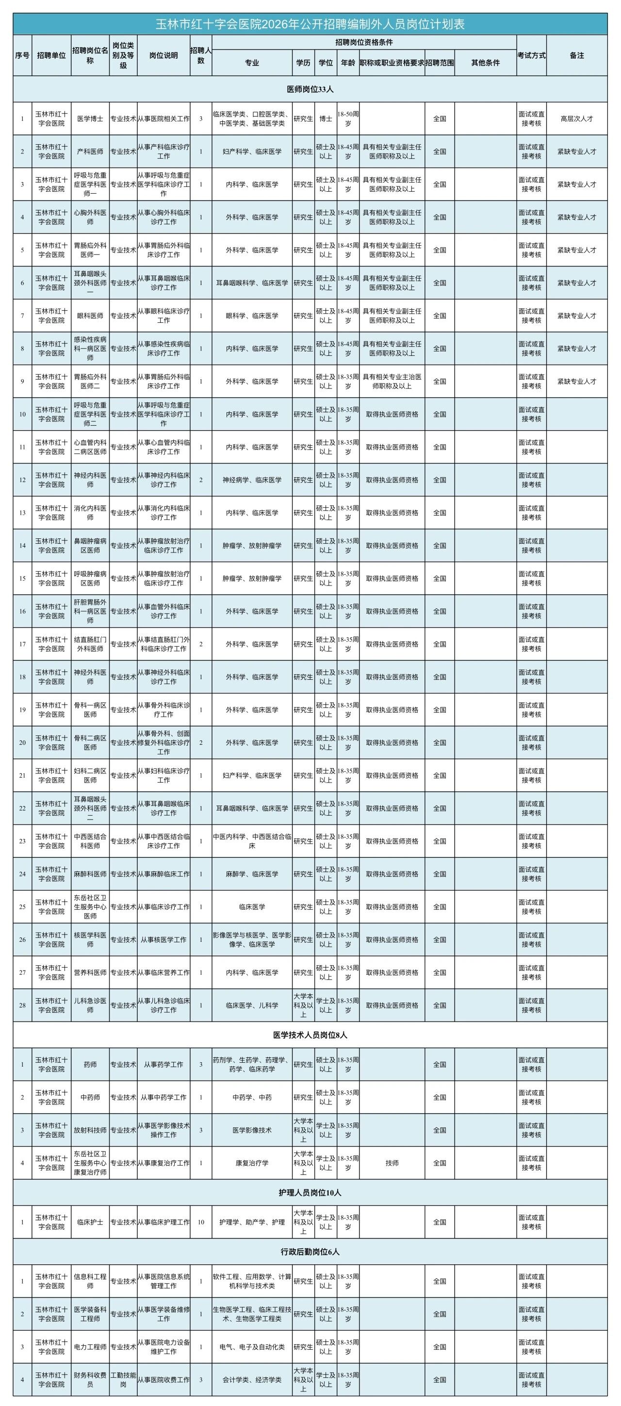1.臨床醫(yī)技崗位:普通高校本科及以上學(xué)歷,專業(yè)與執(zhí)業(yè)類別相符,年齡35周歲以下;博士或中級(jí)以上職稱者條件放寬;