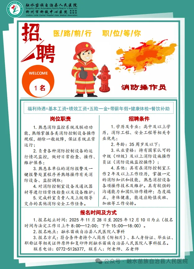 原文標(biāo)題:2025年融水苗族自治縣人民醫(yī)院招聘消防操作員1名
