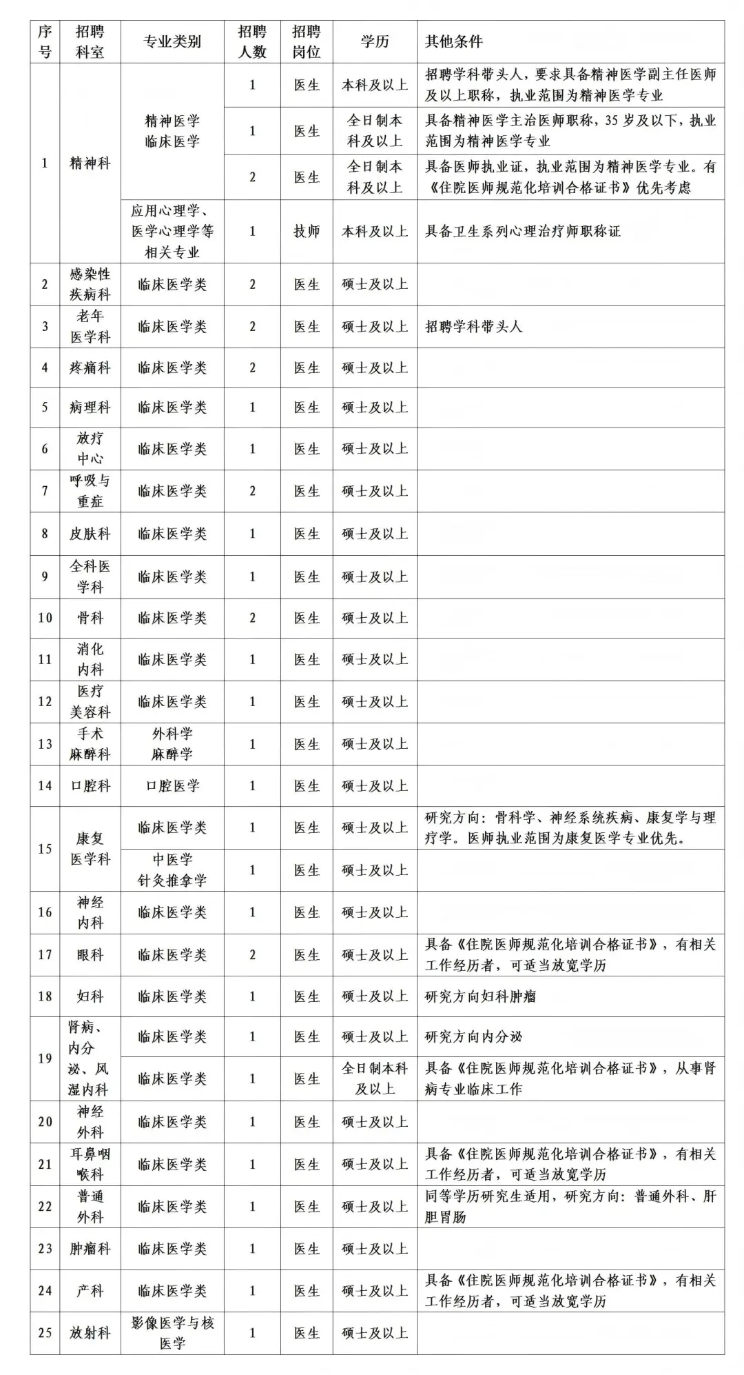 臨床醫(yī)學領(lǐng)域日新月異,學科帶頭人的學術(shù)水平與創(chuàng)新能力直接決定學科高度。為了給學科發(fā)展注入新鮮血液,提升核心競爭力。我院長期動態(tài)招聘各學科帶頭人、高級職稱臨床醫(yī)師、臨床醫(yī)學類全日制碩士研究生及以上學歷人員(作為學科帶頭人的培養(yǎng)對象,納入單位人才儲備庫)。具體待遇按《河池市金城江區(qū)醫(yī)療衛(wèi)生高層次和急需緊缺專業(yè)人才激勵暫行辦法》執(zhí)行。