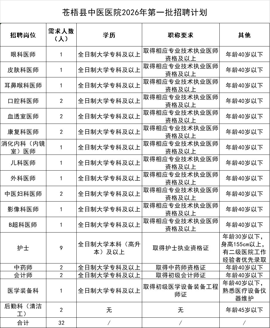 原文標題:2026年蒼梧縣中醫(yī)醫(yī)院第一批人才招聘公告