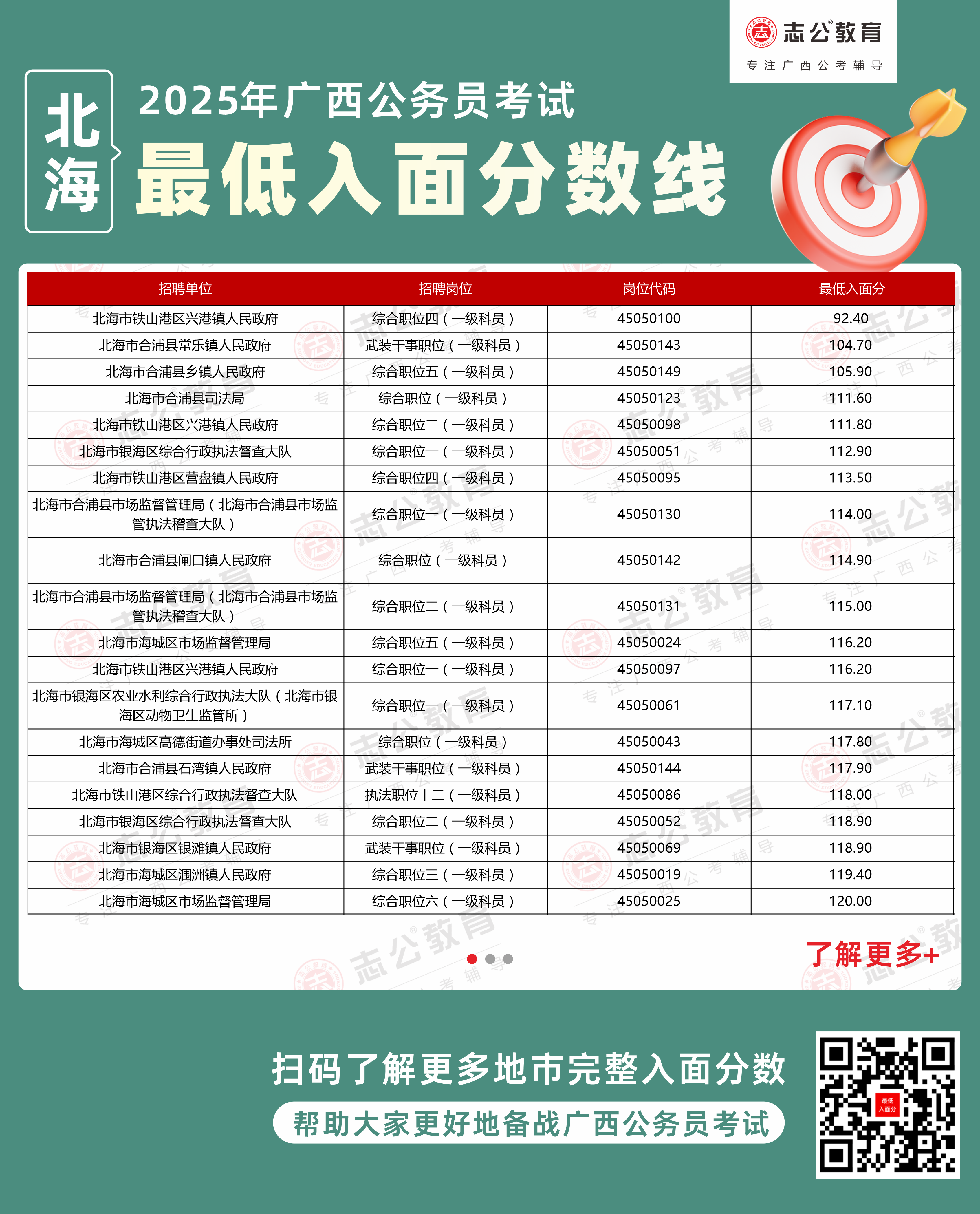 (點擊下載更多2025年北海公務員最低入面分數(shù),數(shù)據(jù)整理自官方發(fā)布的面試資格審查公告)